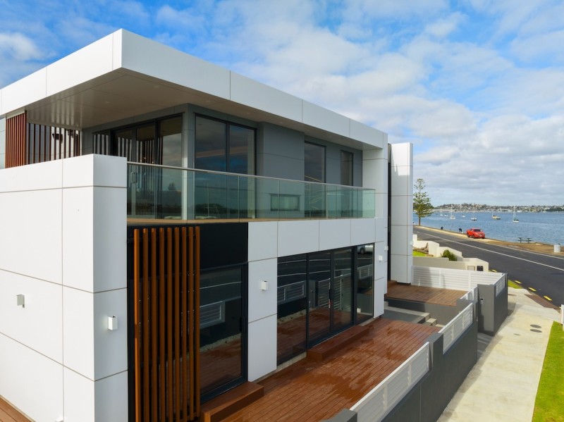 The entire building is stretched wide using alternative height in relation to the boundary. “It’s elevated about a metre higher than the finished ground level and right against the height limit, to maximise the sea views,” Li says.